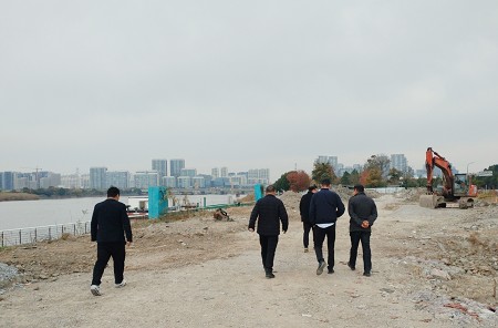 鄞城集团公建公司与区住建局园林中心领导一行来到现场,查看开工部署情况